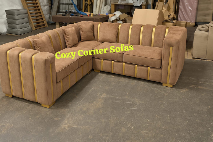 Experience luxury and comfort with the Lilli Gold Corner Sofa. Designed with a plush mink velvet finish and elegant gold trim detailing, this sofa adds sophistication to any living space. Its deep, soft cushions and sturdy frame offer the perfect balance of style and relaxation.